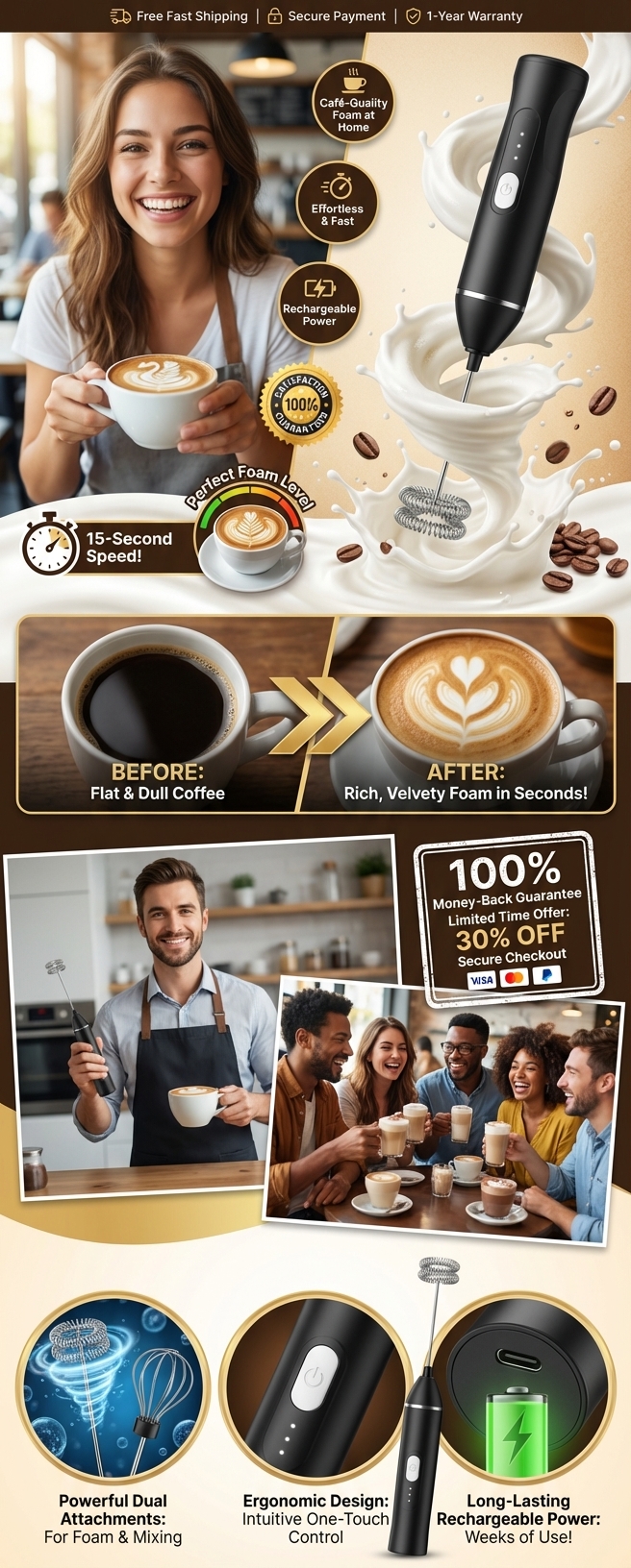 Electric Coffee Mixer Rechargeable Milk Shaker Maker Frother Foamer USB Charging